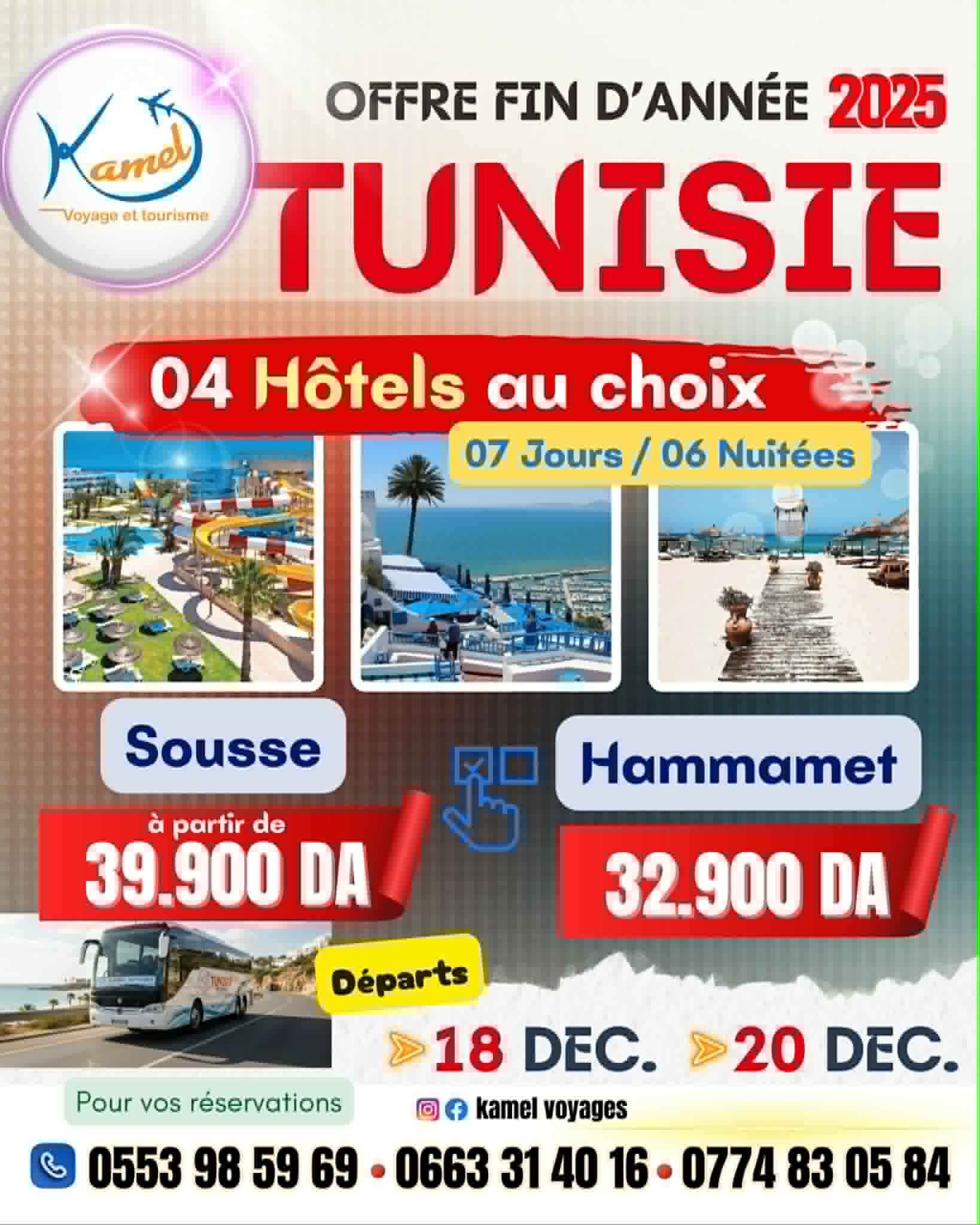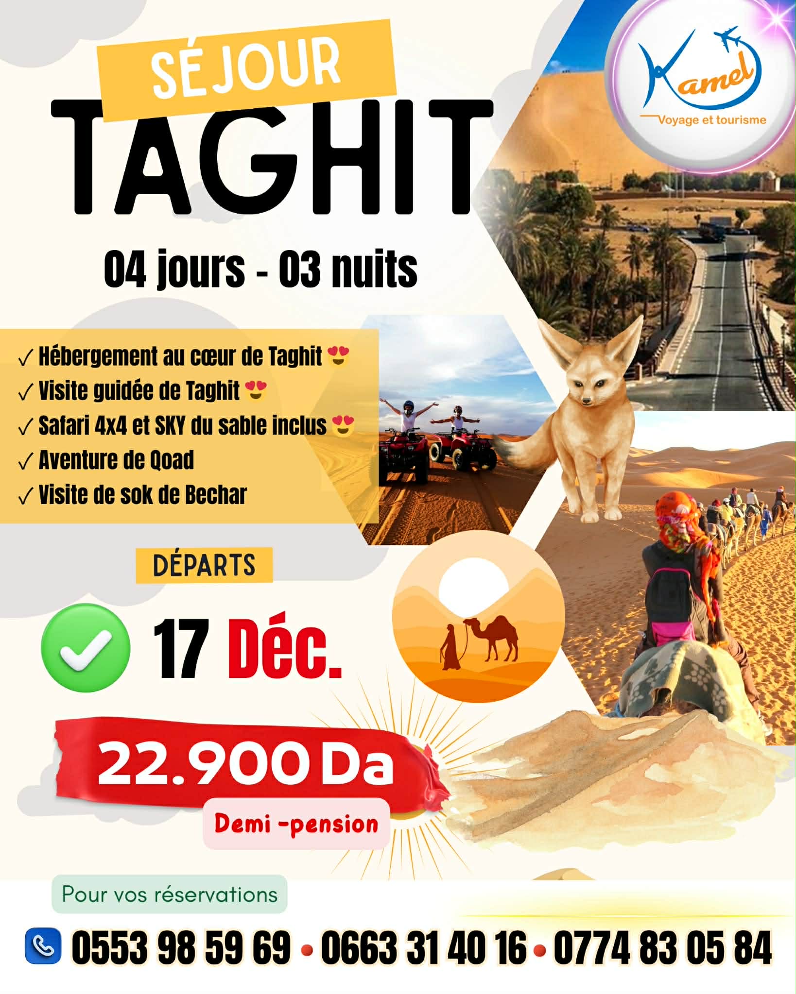 Réservez dès maintenant votre prochaine aventure ! Que ce soit pour l’une de nos destinations populaires ou pour d’autres horizons qui vous font rêver, notre équipe est là pour vous accompagner. Contactez-nous et préparez-vous à partir !